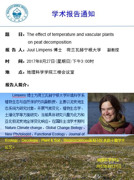 【地理与生态论坛】Juul Limpens: The effect of temperature and vascular plants on peat decomposition