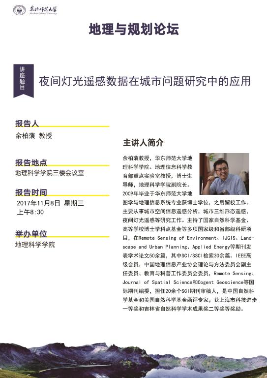 【地理与规划论坛】余柏蒗:夜间灯光遥感数据在城市问题研究中的应用