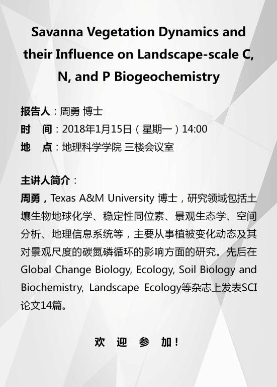 周勇:Savanna Vegetation Dynamics and their Influence on Landscape-scale C, N, and P Biogeochemistry