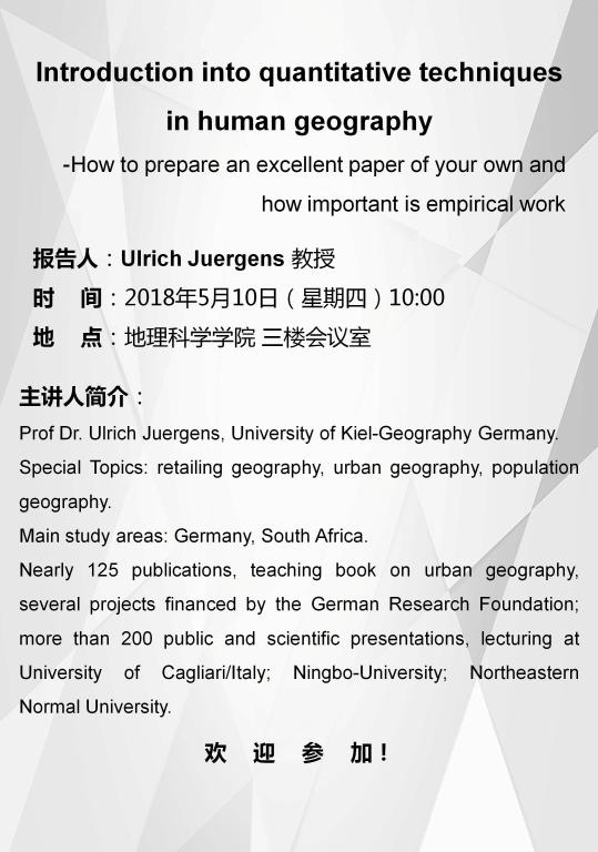 Ulrich Juergens: Introduction into quantitative techniques in human geography-How to prepare an excellent paper of your own and how important is empirical work