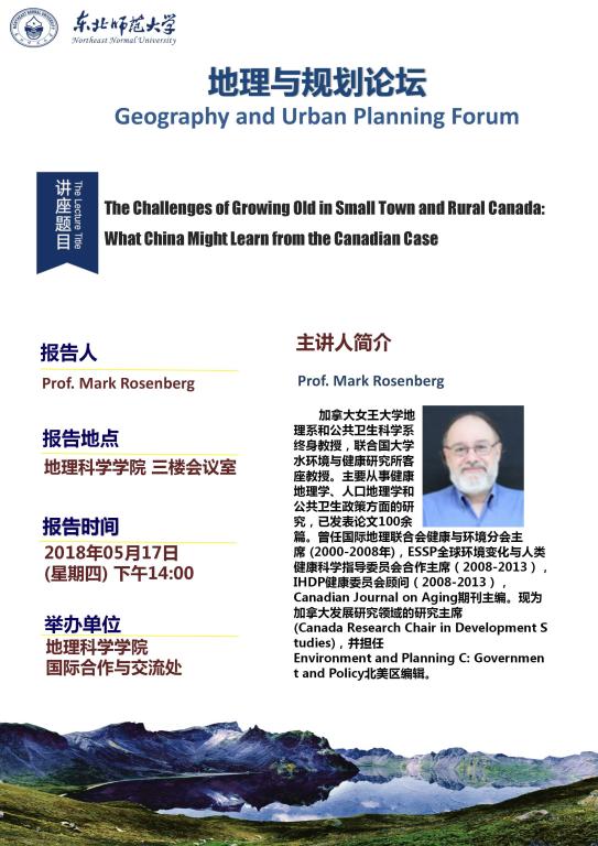 【地理与规划论坛】Mark Rosenberg:The Challenges of Growing Old in Small Town and Rural Canada: What China Might Learn from the Canadian Case