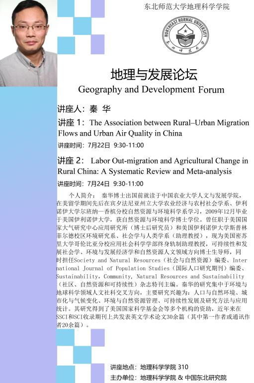 【地理与发展论坛】秦华:The Association between Rural–Urban Migration Flows and Urban Air Quality in China