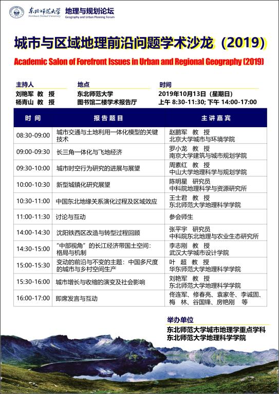 【地理与规划论坛】“城市与区域地理前沿问题”2019学术沙龙