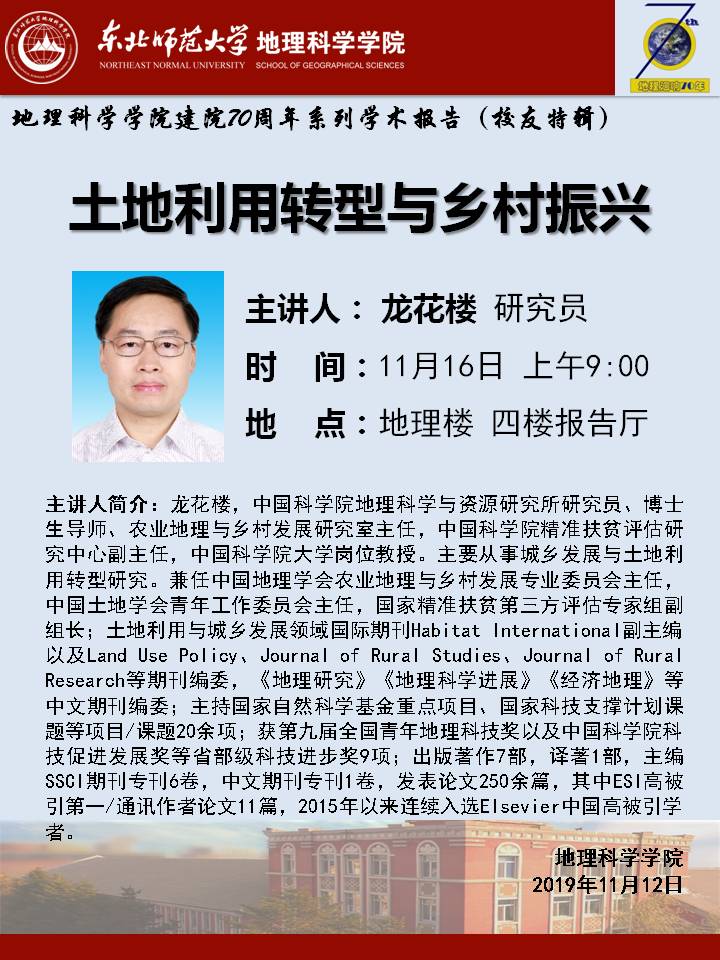 【地理科学学院建院70周年系列学术报告·校友特辑】龙花楼:土地利用转型与乡村振兴