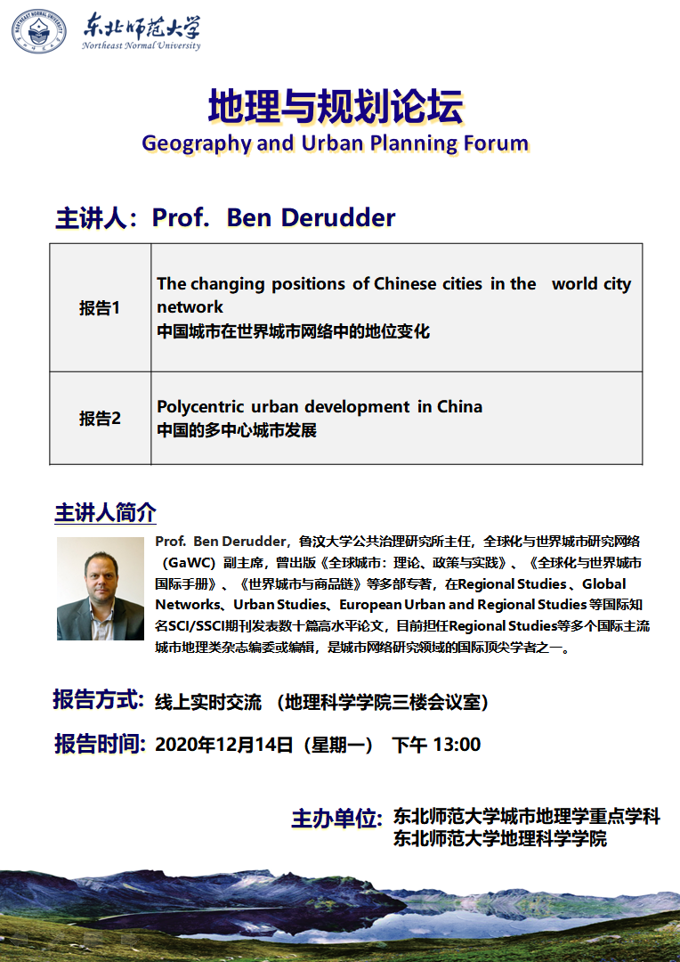 【地理与规划论坛】Prof.Ben Derudder:1.中国城市在世界城市网络中的地位变化/ 2.中国的多中心城市发展