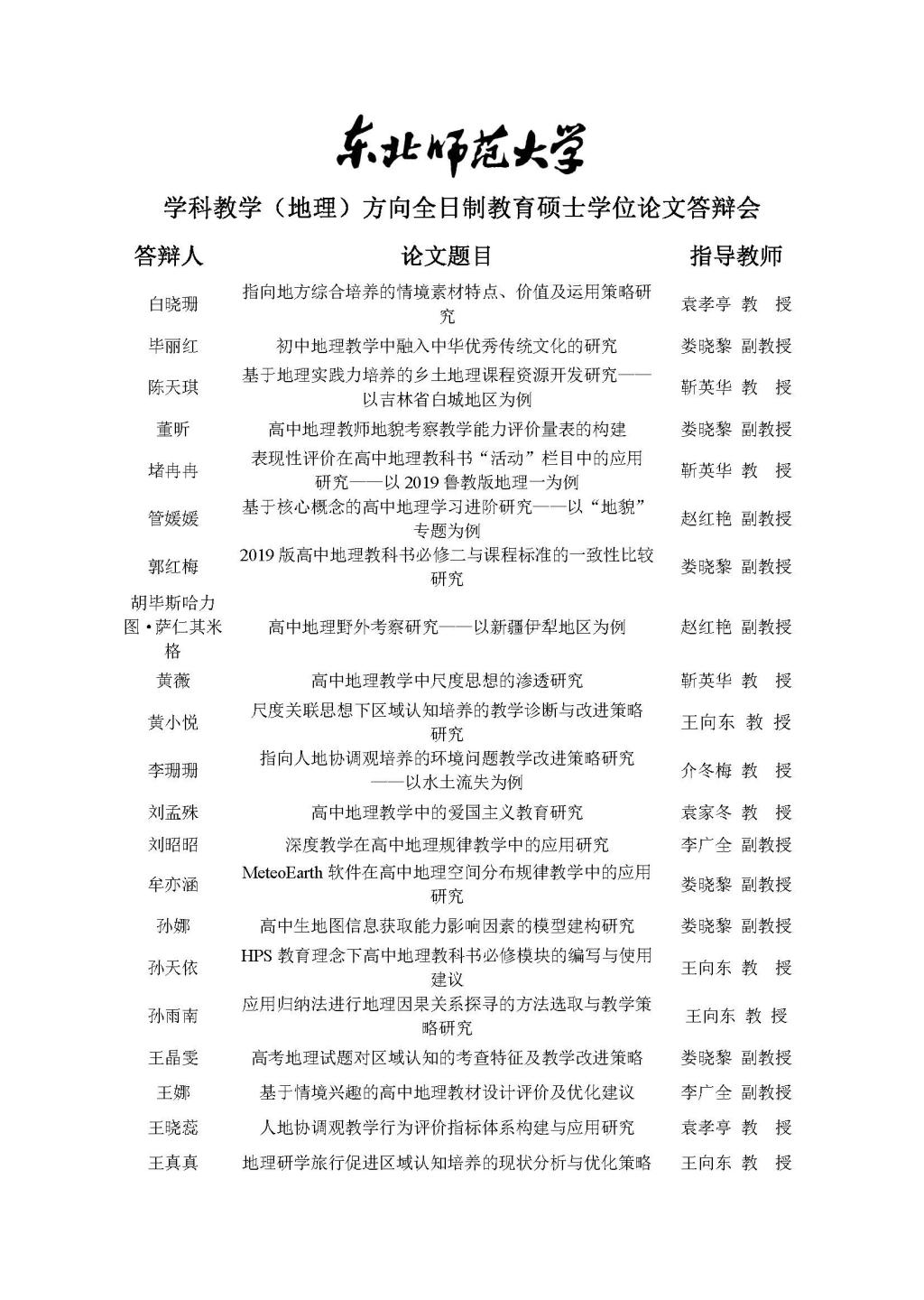 【硕博答辩】学科教学(地理)方向全日制教育硕士学位论文答辩