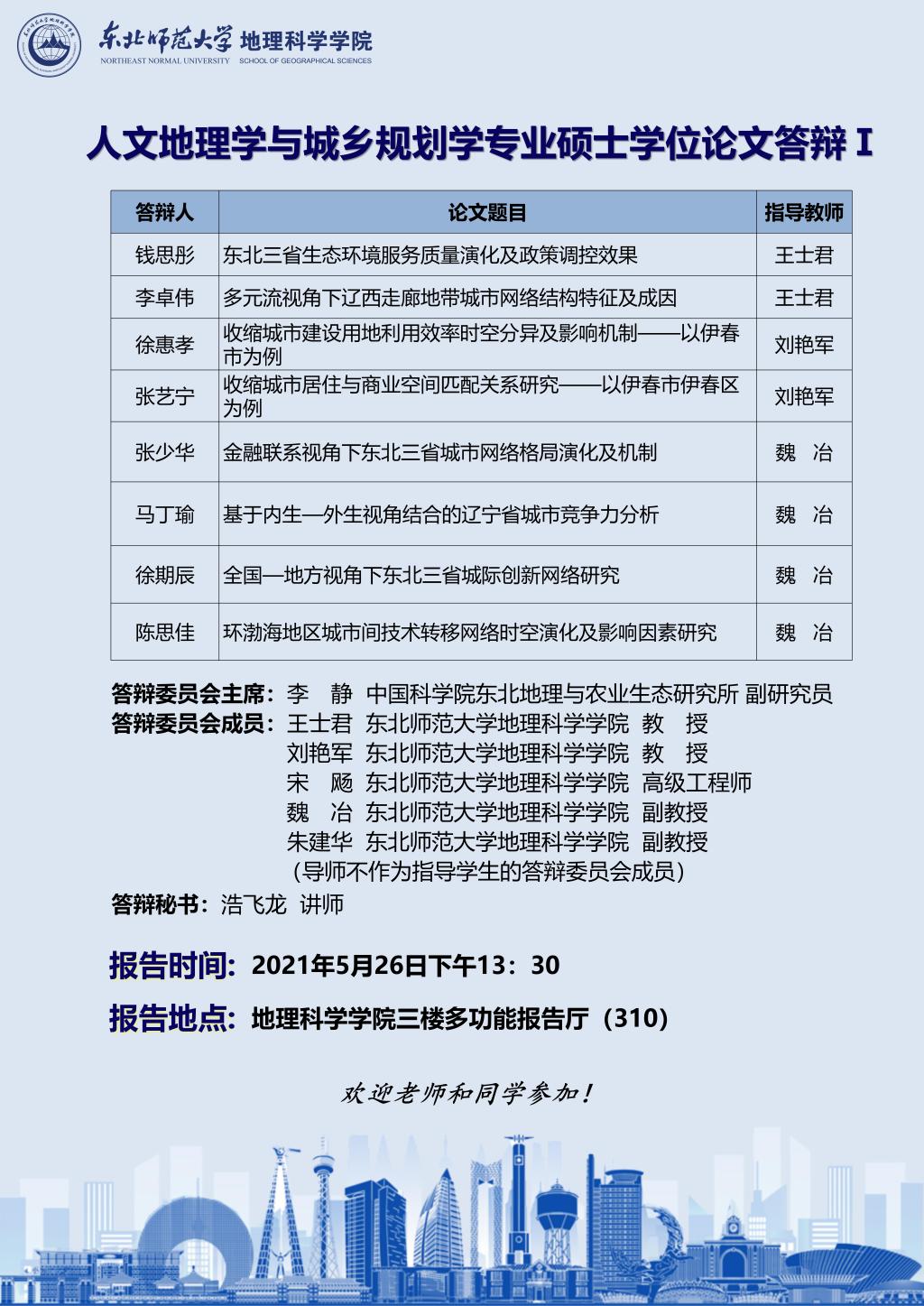 【硕博答辩】人文地理学与城乡规划学专业硕士学位论文答辩Ⅰ