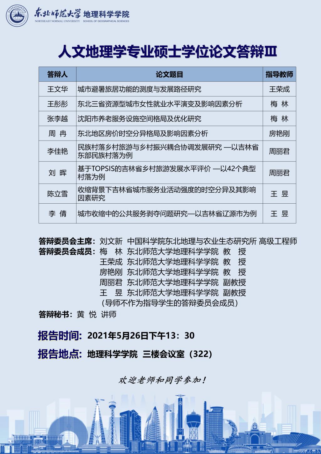 【硕博答辩】人文地理学专业硕士学位论文答辩Ⅲ