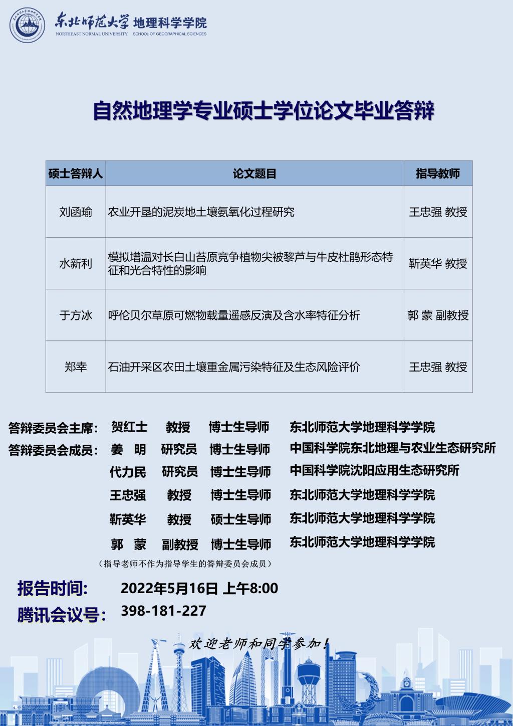 【硕博答辩】自然地理学专业硕士学位论文毕业答辩