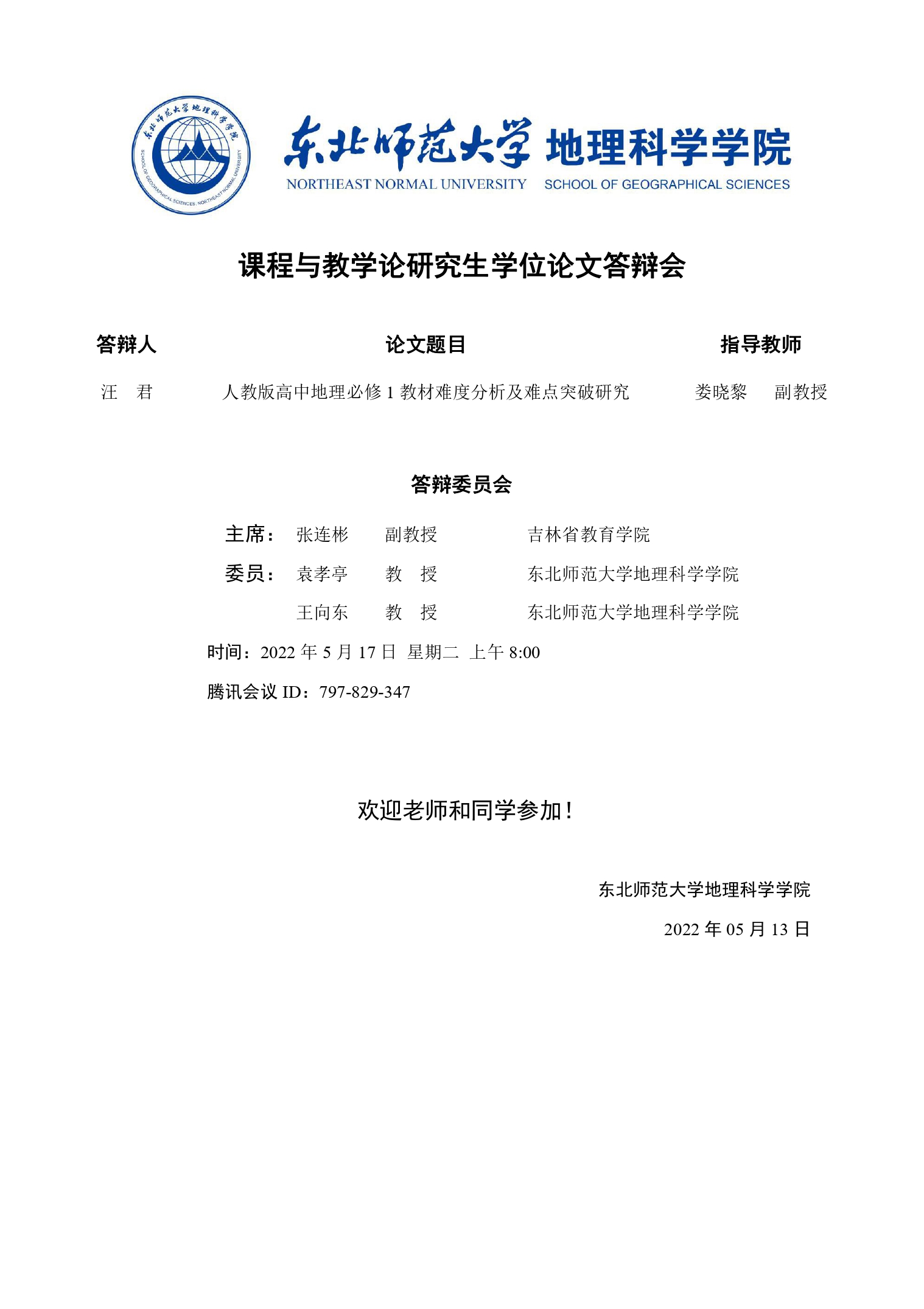 【硕博答辩】课程与教学论研究生学位论文答辩会