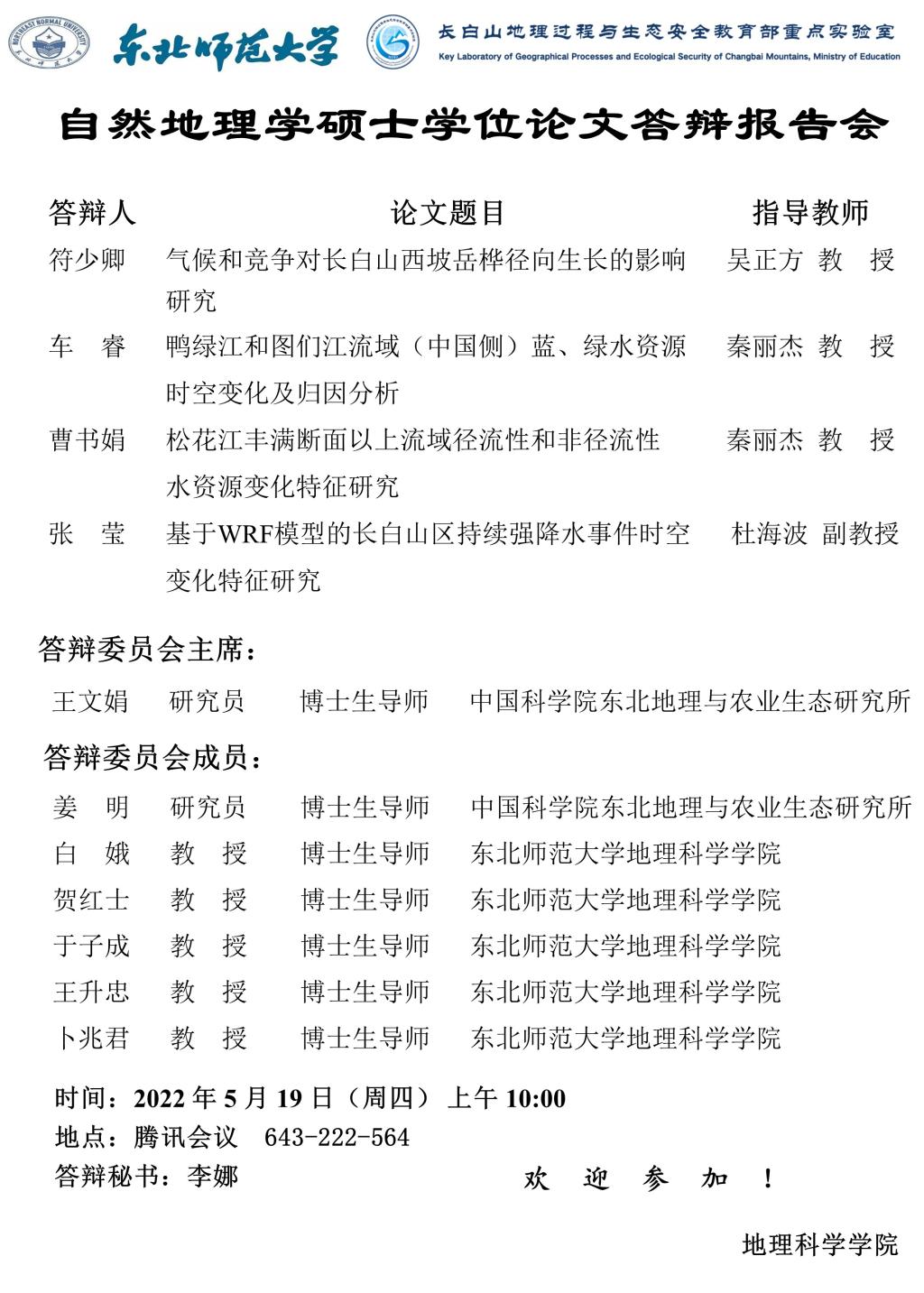 【硕博答辩】自然地理学硕士学位论文答辩报告会