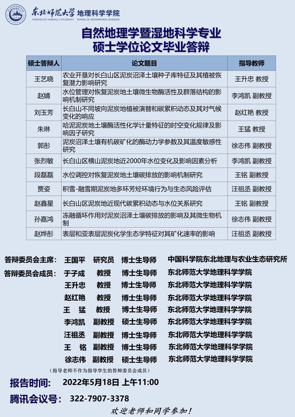 【硕博答辩】自然地理学暨湿地科学专业硕士学位论文毕业答辩