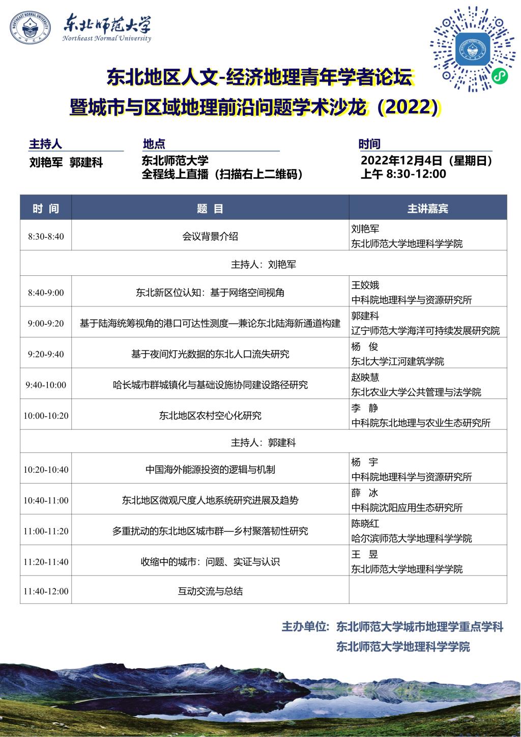 【城市与区域地理前沿问题学术沙龙(2022)】东北地区人文-经济地理青年学者论坛
