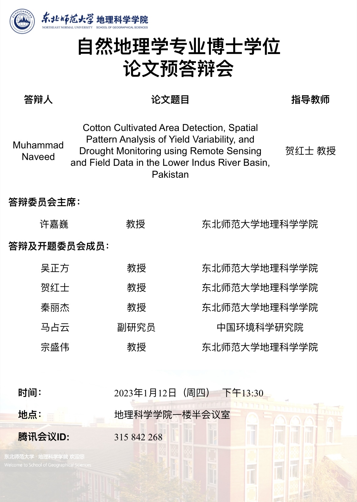 【硕博答辩】自然地理学专业博士学位论文预答辩