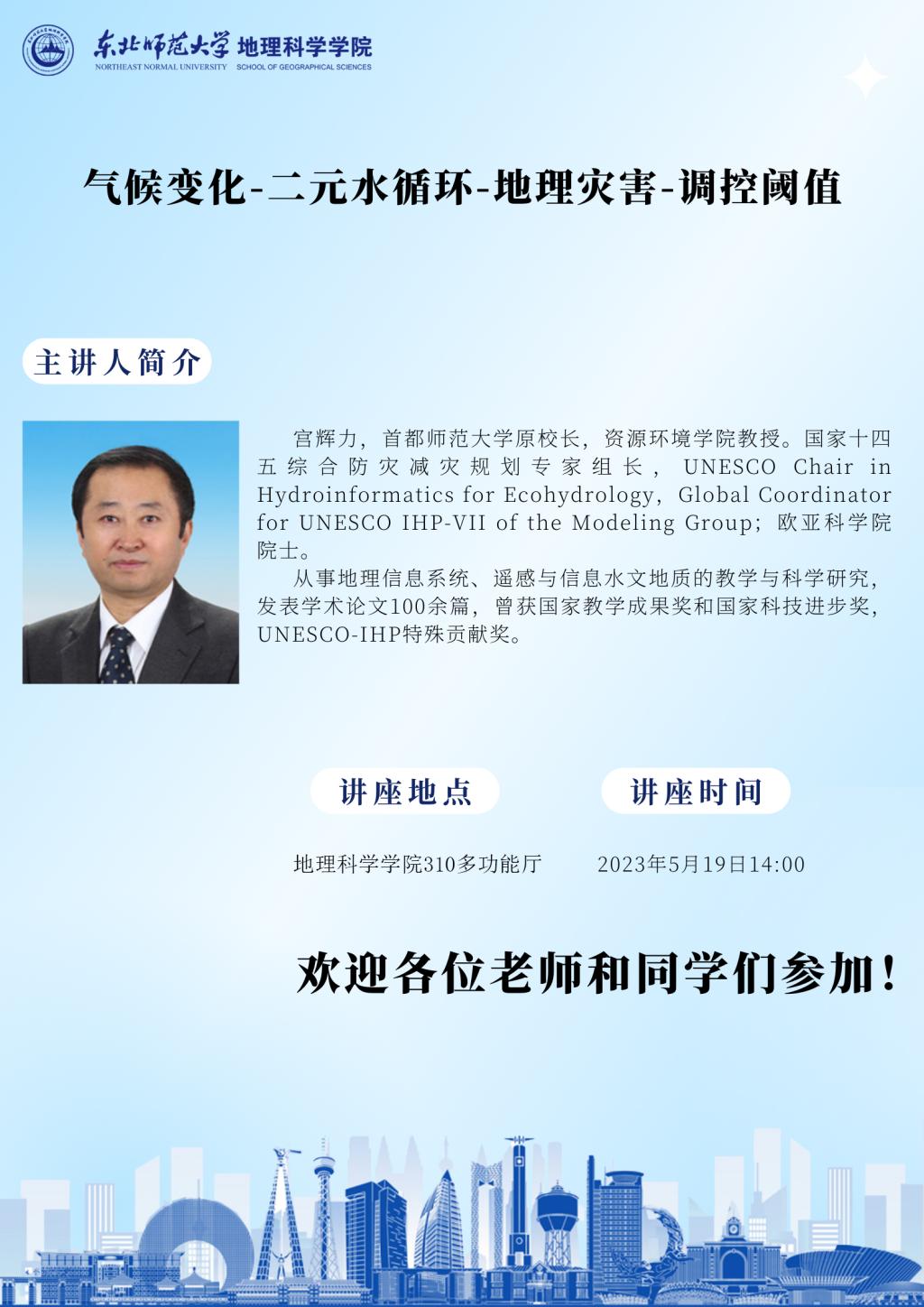 【学术报告】宫辉力:气候变化-二元水循环-地理灾害-调控阈值