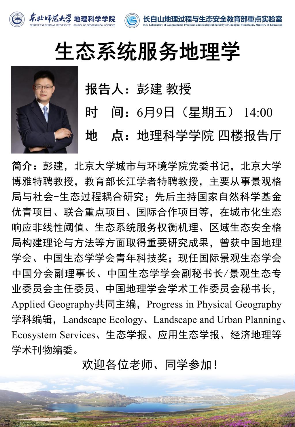 【学术报告】彭建:生态系统服务地理学