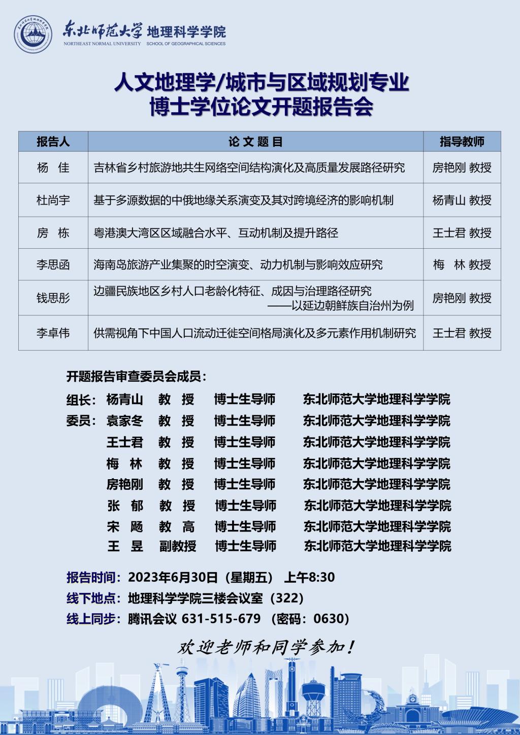 【硕博开题】人文地理学专业、城市与区域规划专业博士学位论文开题报告会