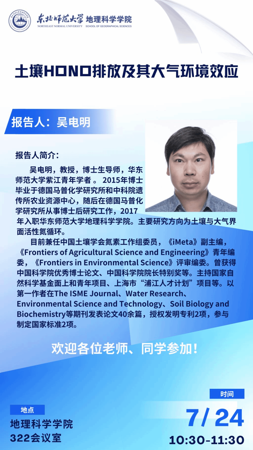 【学术报告】吴电明:土壤HONO排放及其大气环境效应