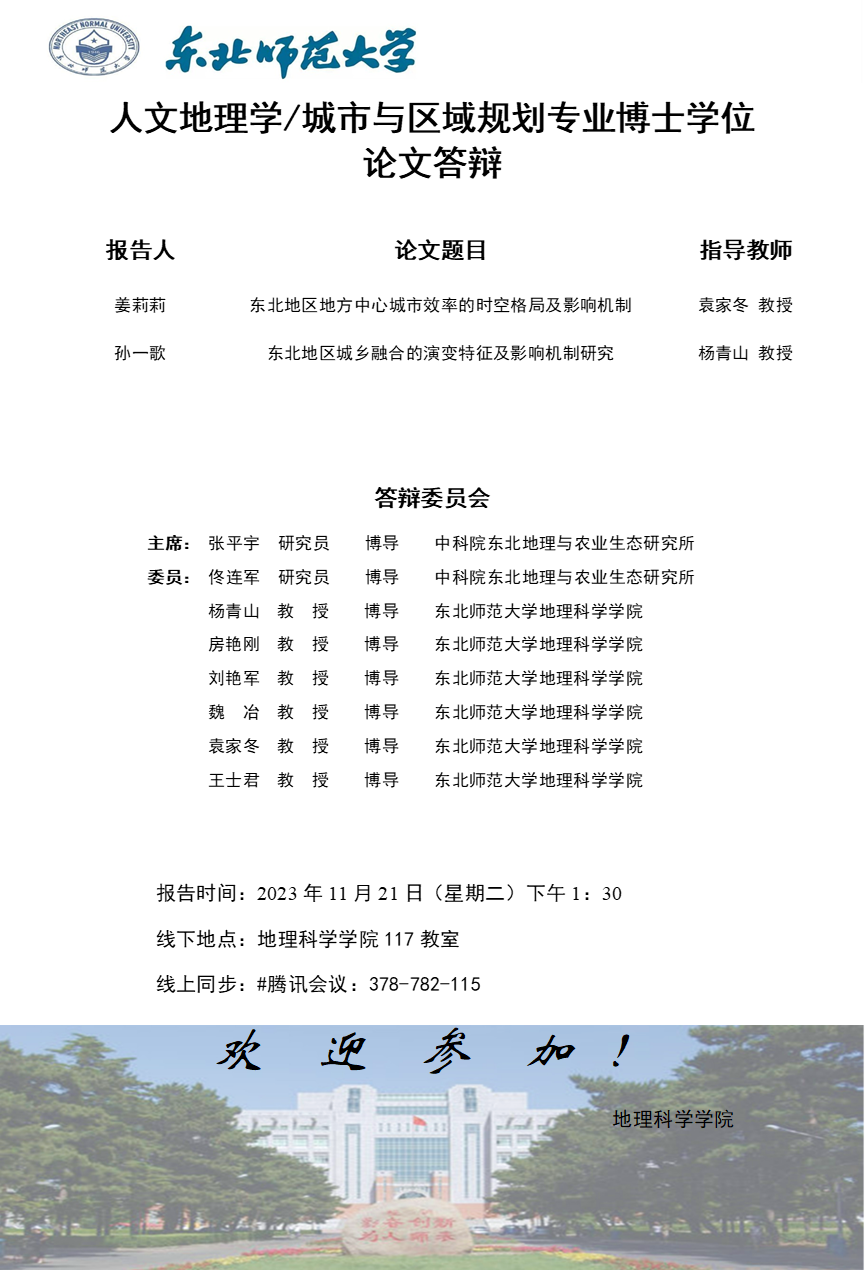 【硕博答辩】人文地理学/城市与区域规划专业博士学位论文答辩