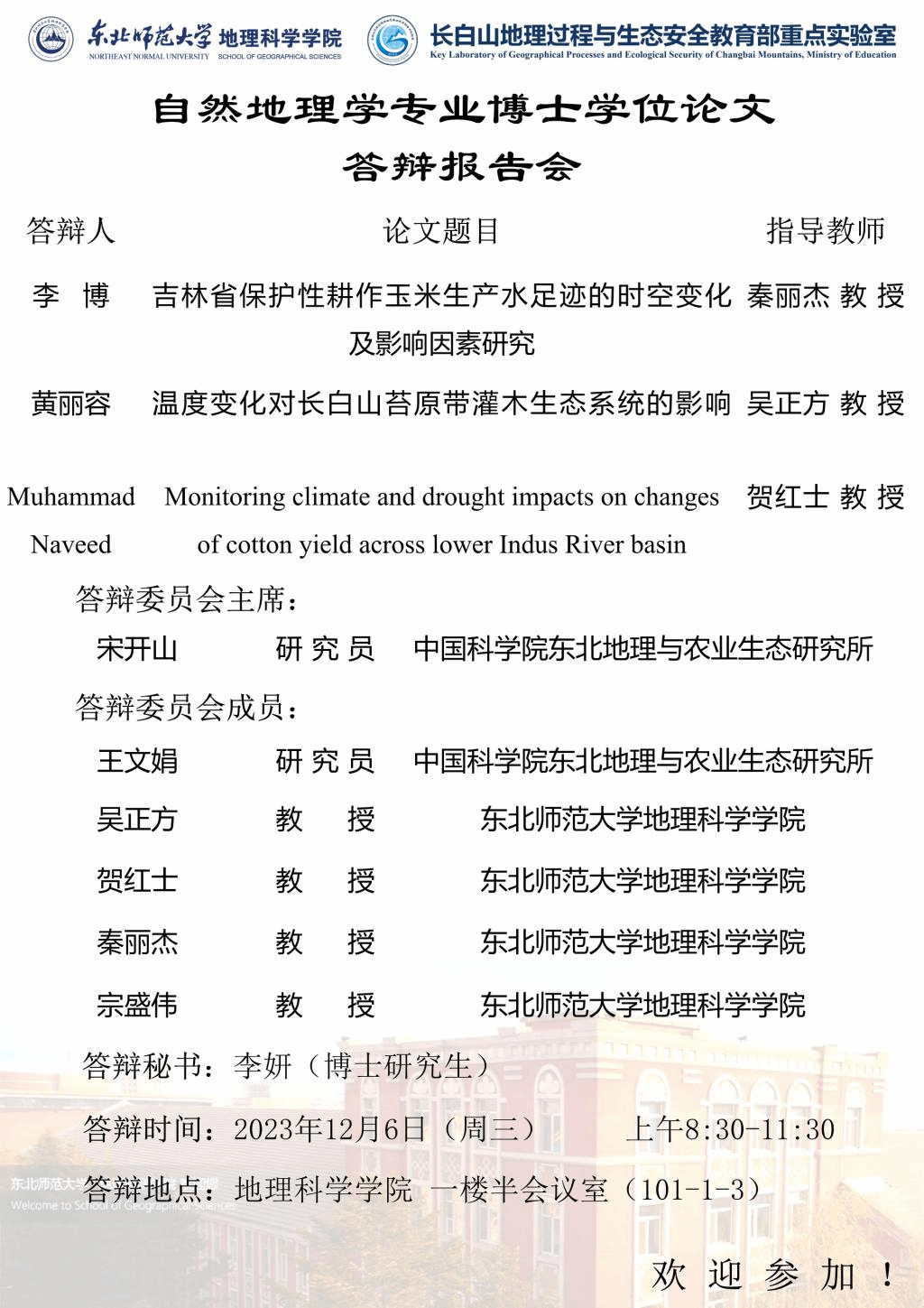 【硕博答辩】自然地理学专业博士学位论文答辩报告会