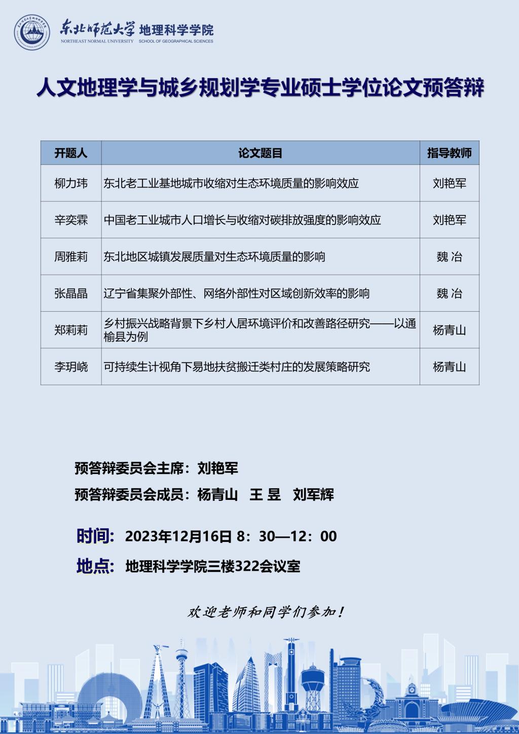 【硕博答辩】人文地理学与城乡规划学专业硕士学位论文预答辩
