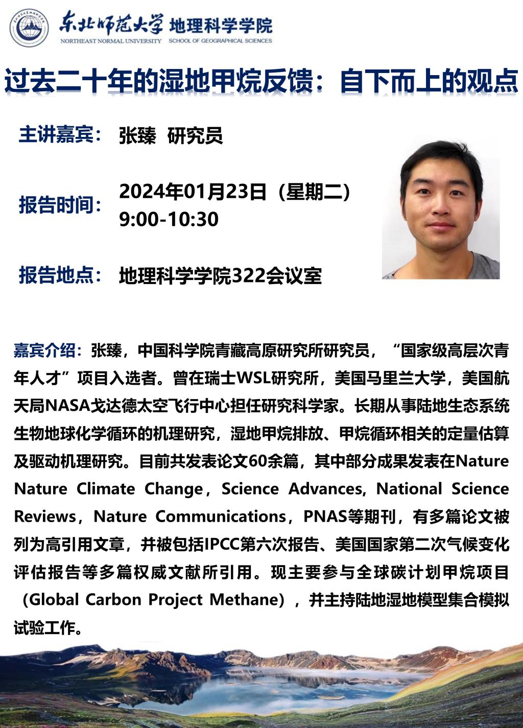 【学术报告】张臻:过去二十年的湿地甲烷反馈:自下而上的观点