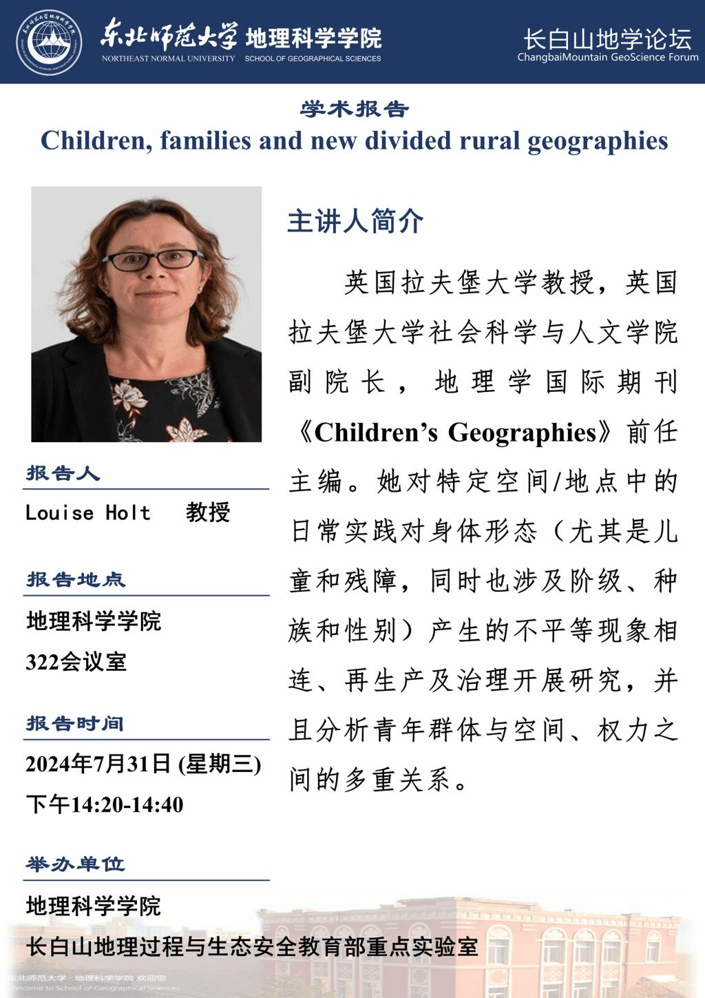 【长白山地学论坛(第六期)】 Louise Holt: Children, families and new divided rural geographies