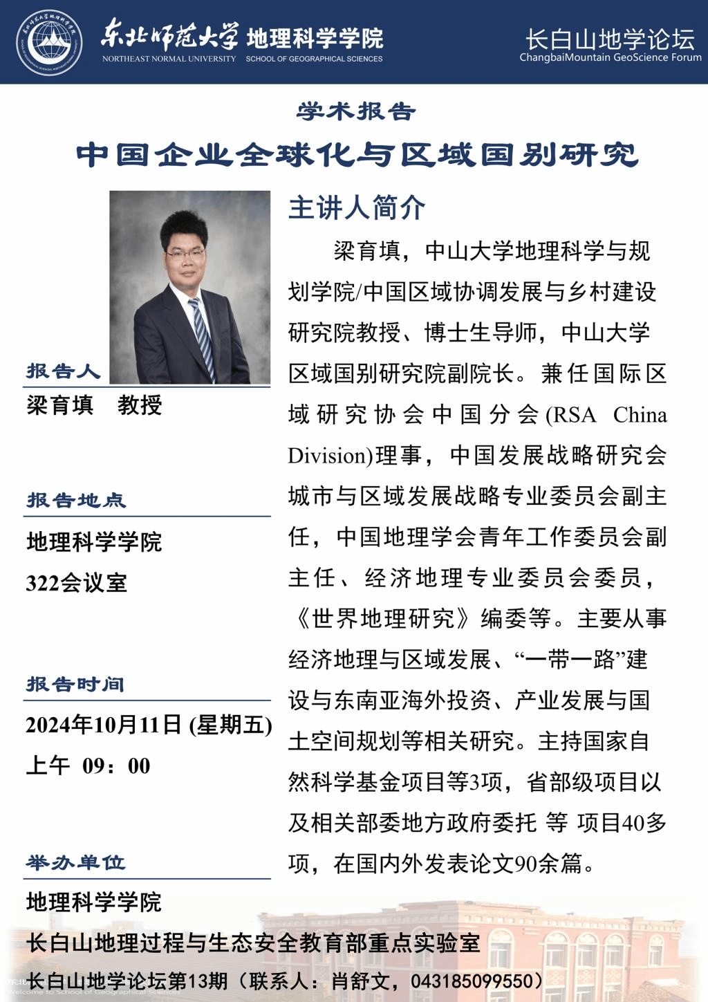 【长白山地学论坛(第十三期)】梁育填:中国企业全球化与区域国别研究