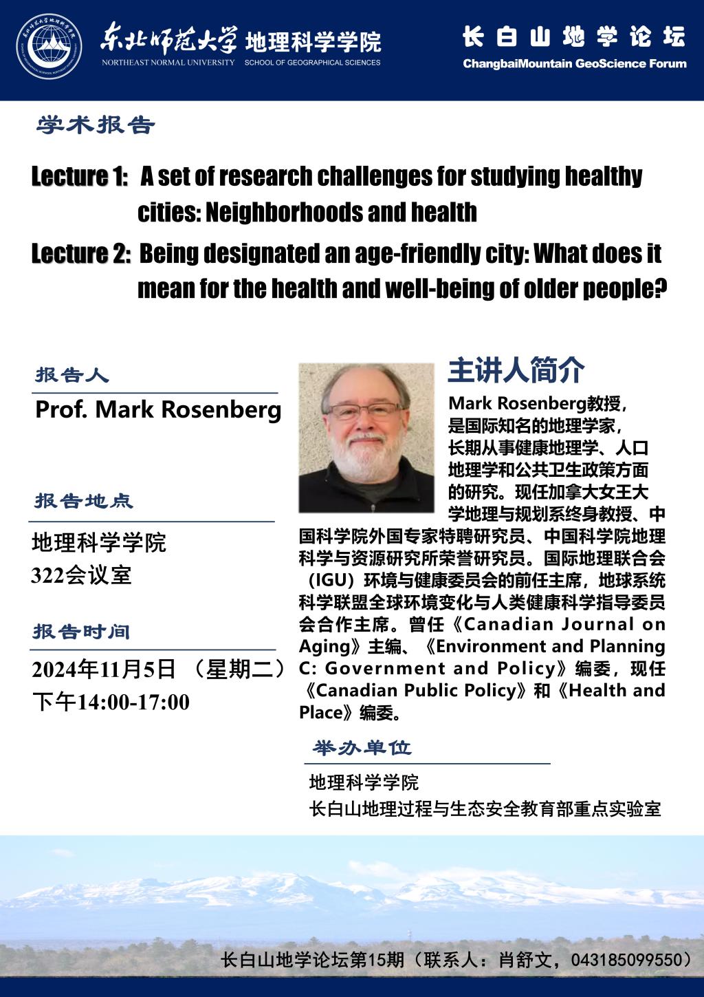 【长白山地学论坛(第十五期)】Prof. Mark Rosenberg:Being designated an age-friendly city:what does itmean for the heaith and well-being of older people?
