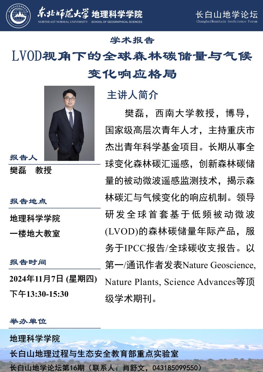 【长白山地学论坛(第十六期)】樊磊:LVOD视角下的全球森林碳储量与气候变化响应格局
