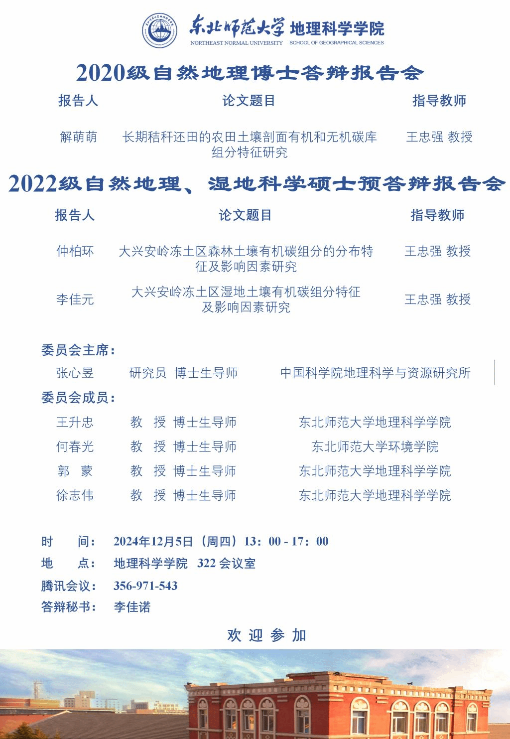 【硕博答辩】2020级自然地理博士答辩暨2022级自然地理、湿地科学硕士预答辩报告会