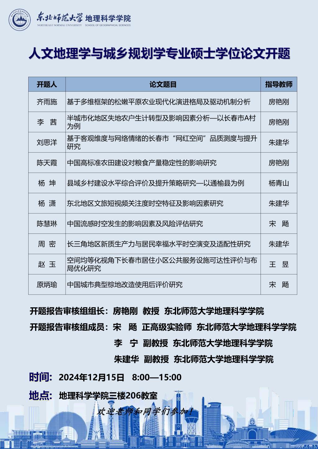 【硕博开题】人文地理学与城市规划学专业硕士学位论文开题