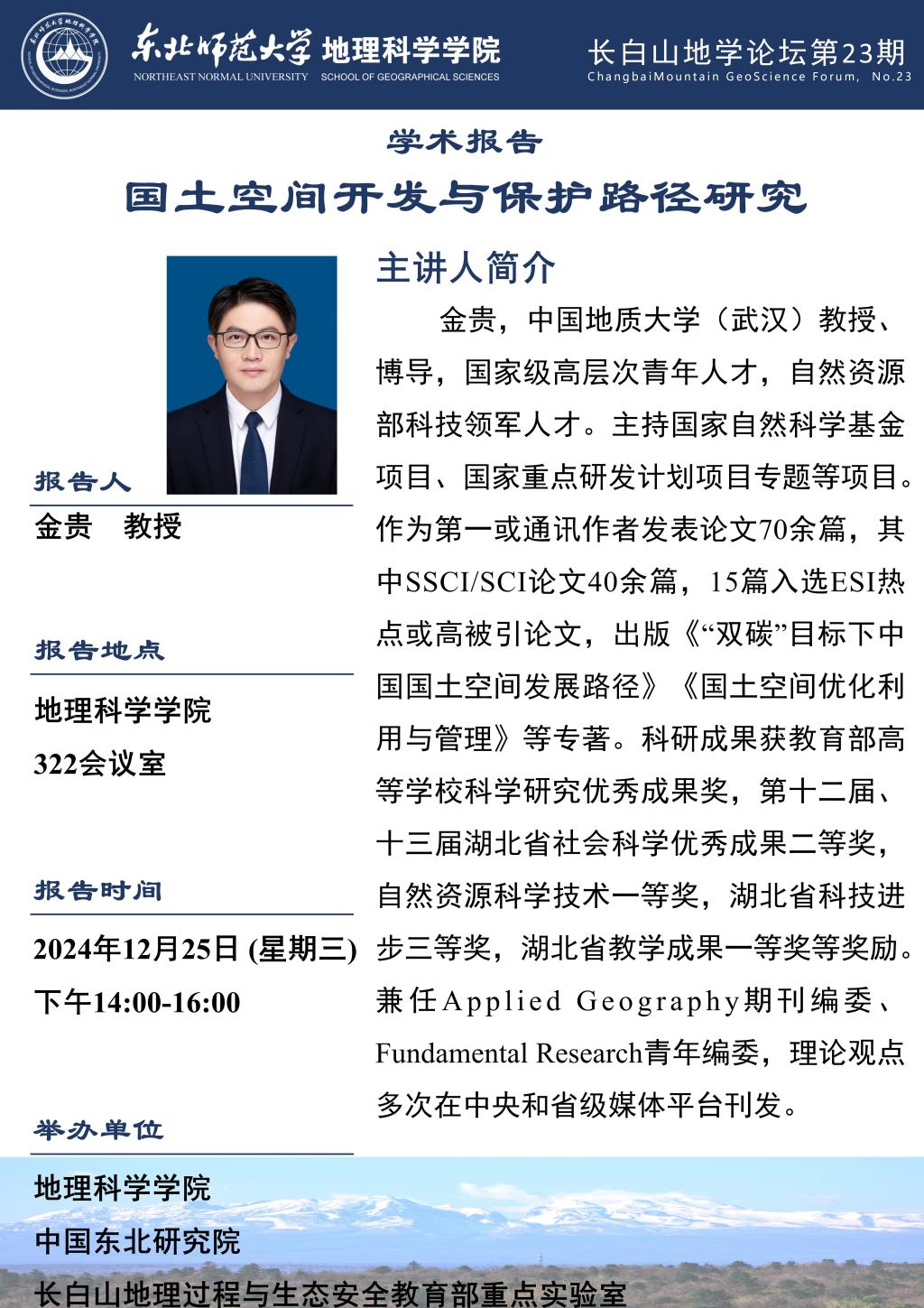 【长白山地学论坛(第二十三期)】金贵:国土空间开发与保护路径研究
