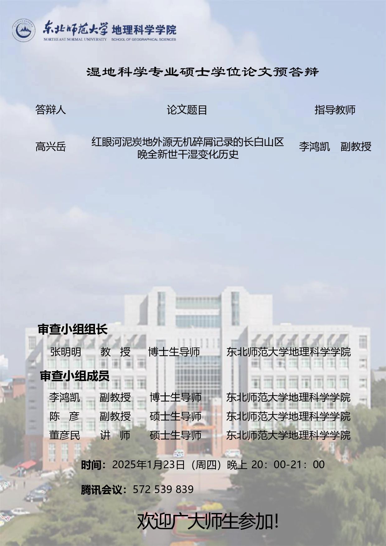 【硕博答辩】湿地科学专业硕士学位论文预答辩