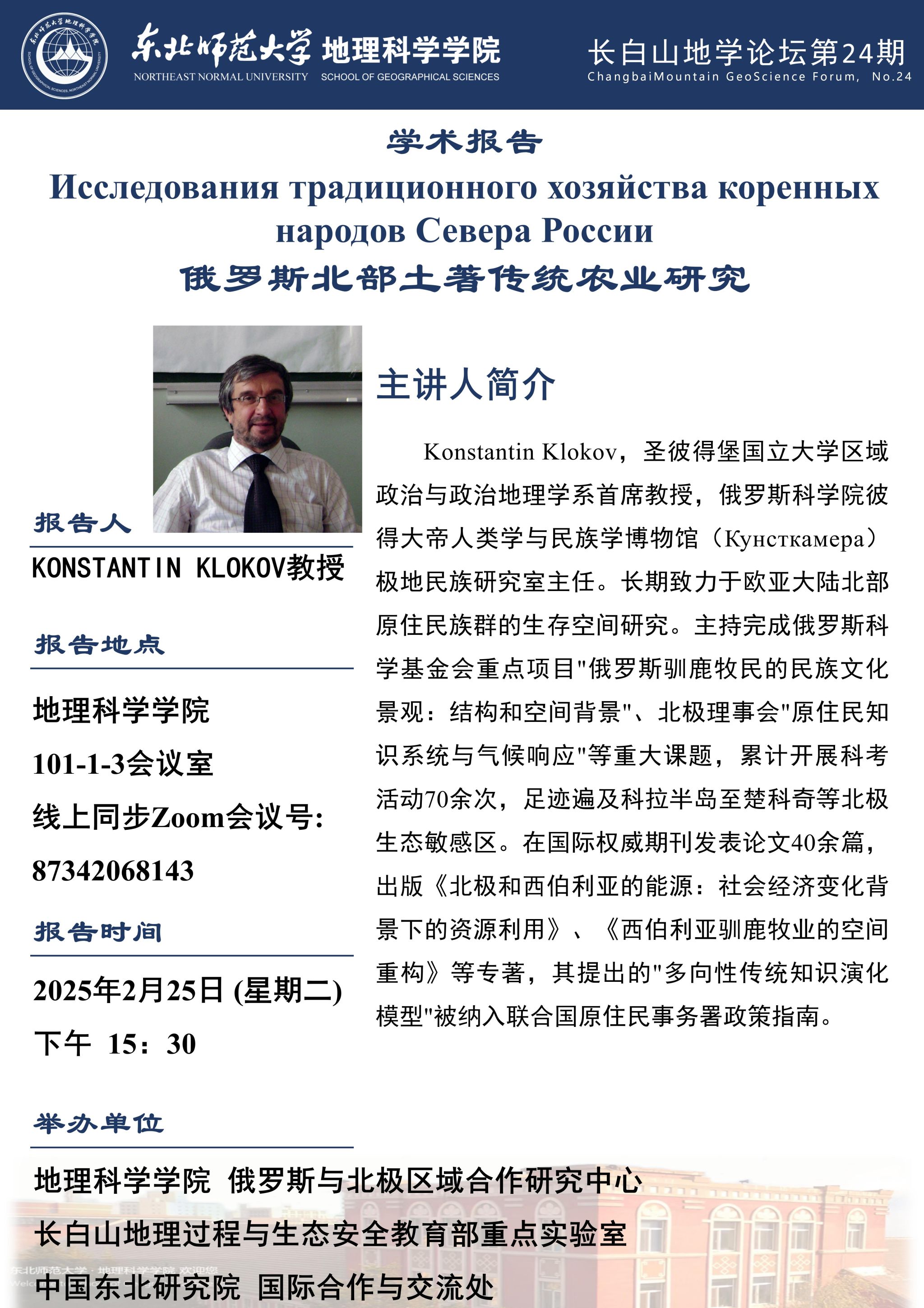 【长白山地学论坛(第二十四期)】Konstantin Klokov:俄罗斯北部土著传统农业研究