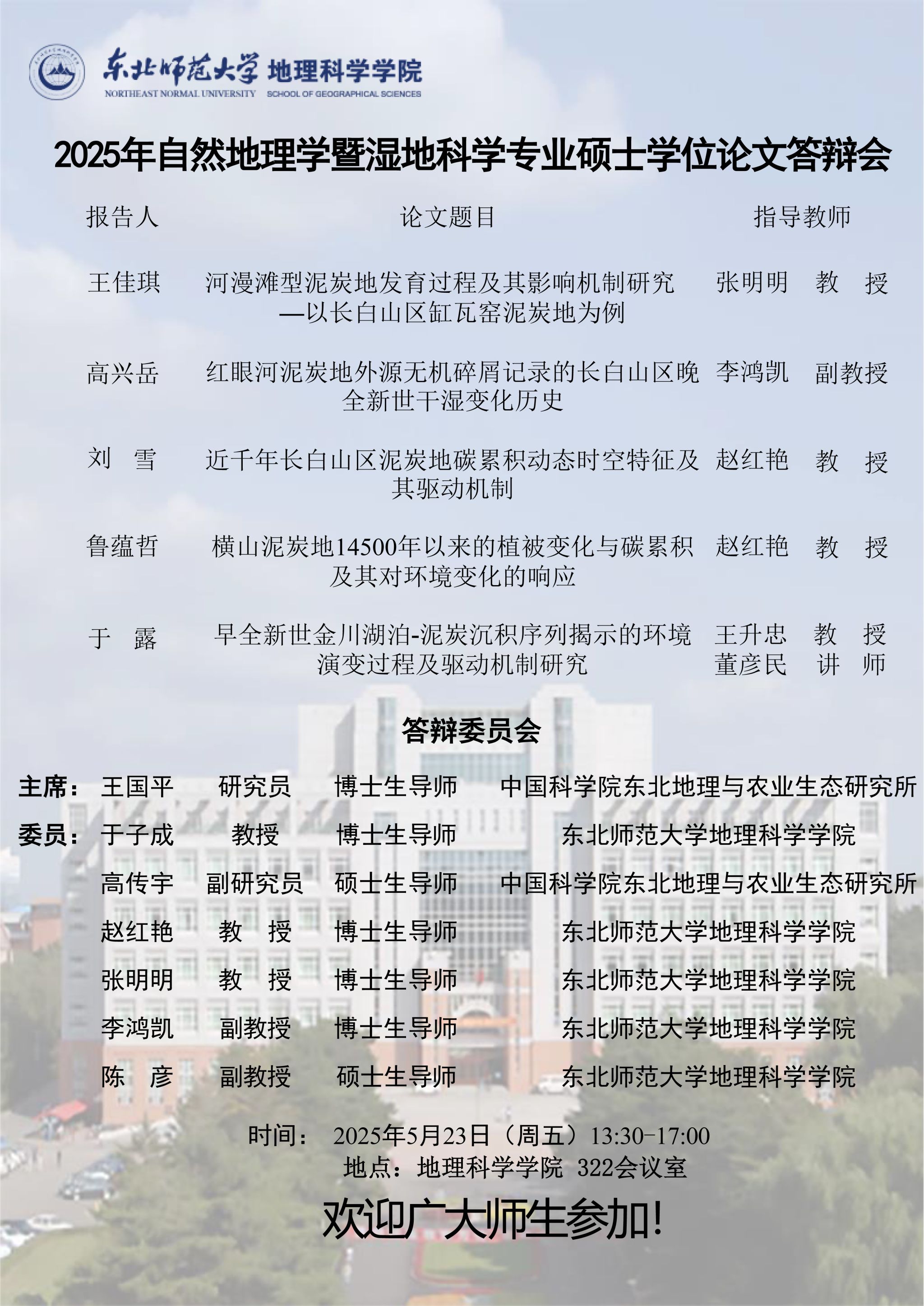 【硕博答辩】2025届自然地理学暨湿地科学专业硕士学位论文答辩会