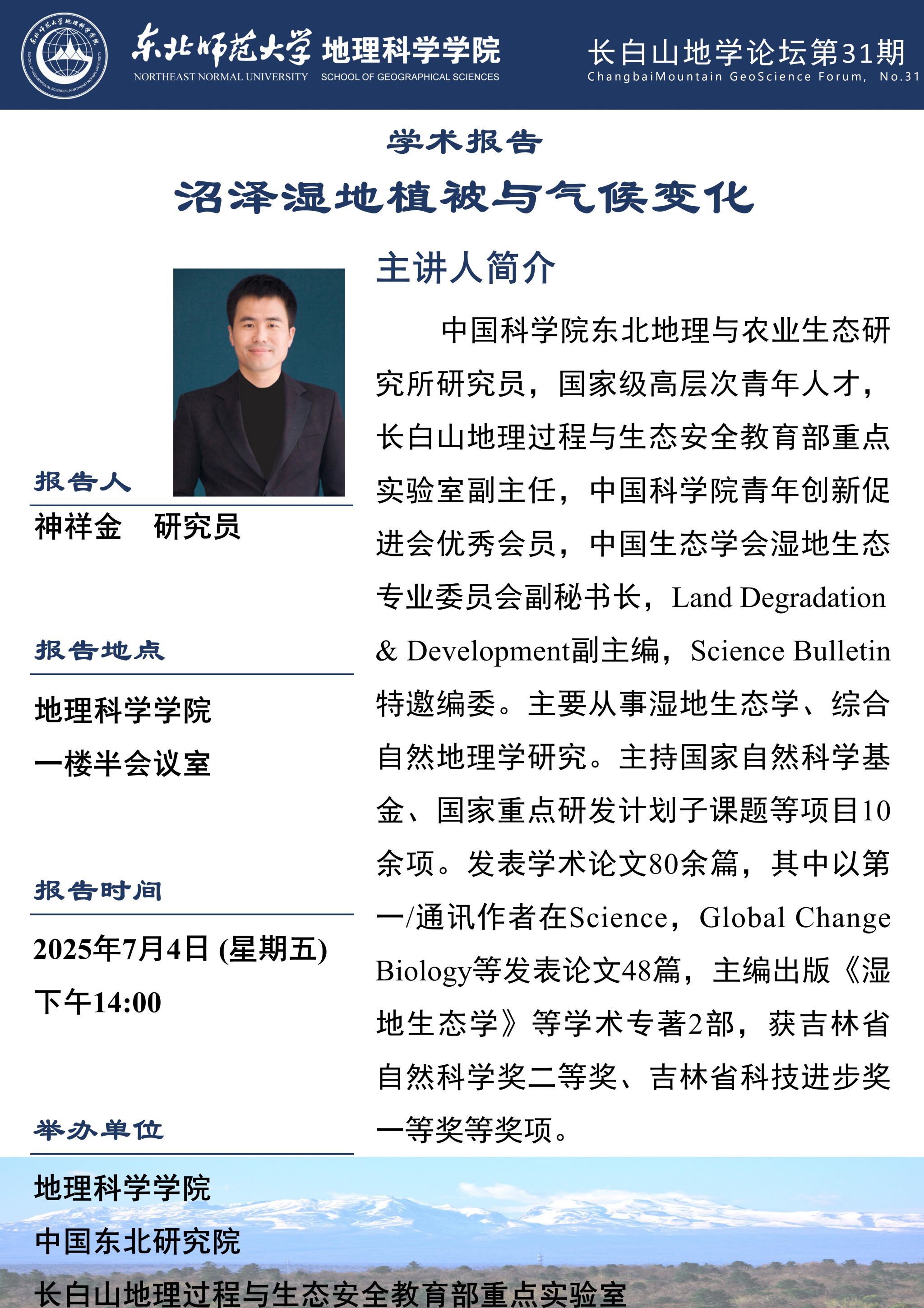 【长白山地学论坛(第三十一期)】神祥金:沼泽湿地植被与气候变化