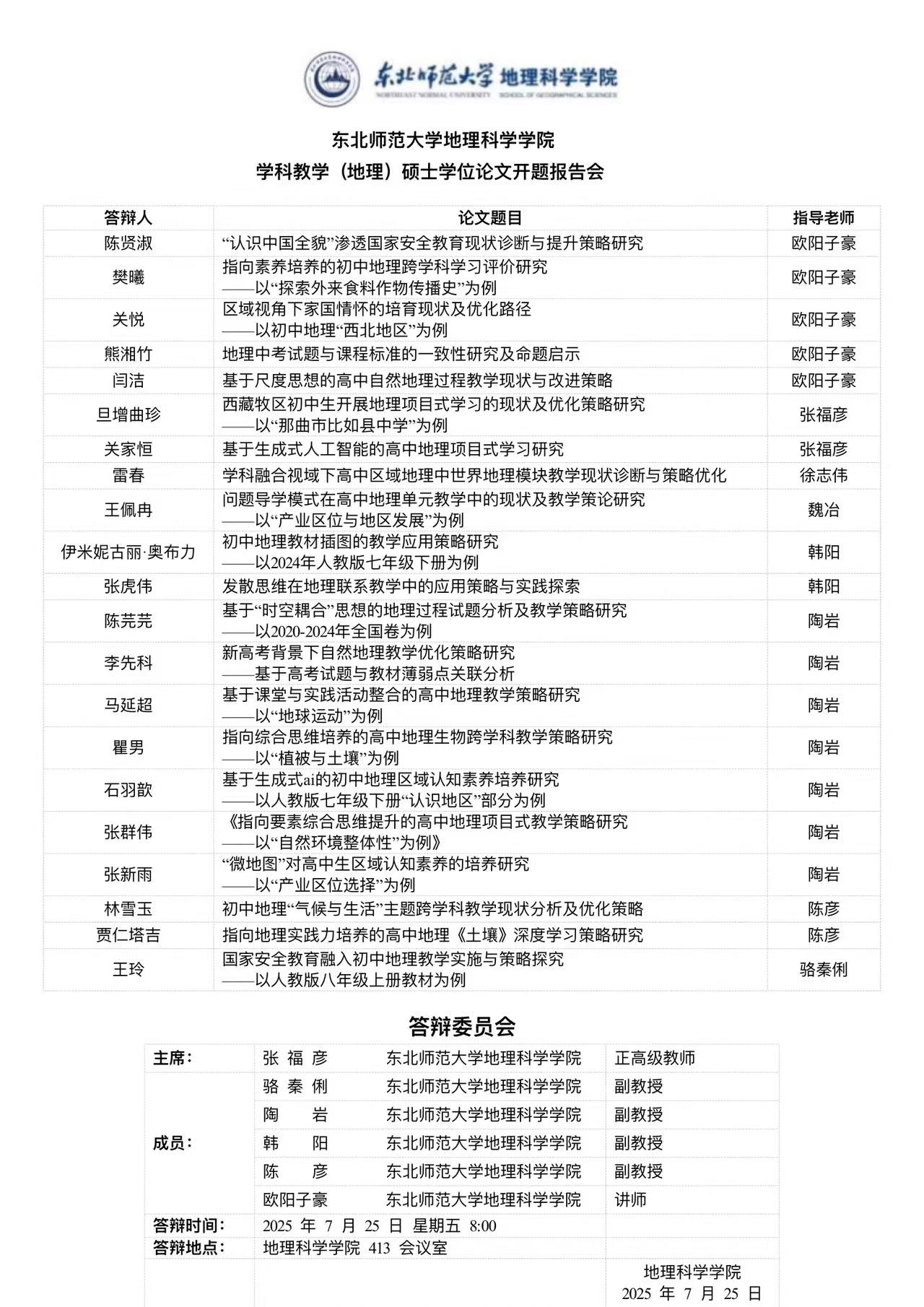 【硕博开题】星空网页版登录入口学科教学(地理)硕士学位论文开题报告会