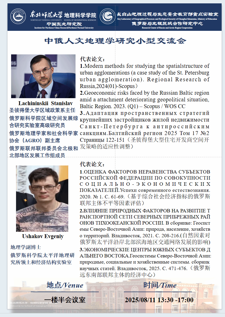 【长白山地理过程与生态安全教育部重点实验室俄罗斯与北极区域合作研究中心】中俄人文地理学研究小型交流会