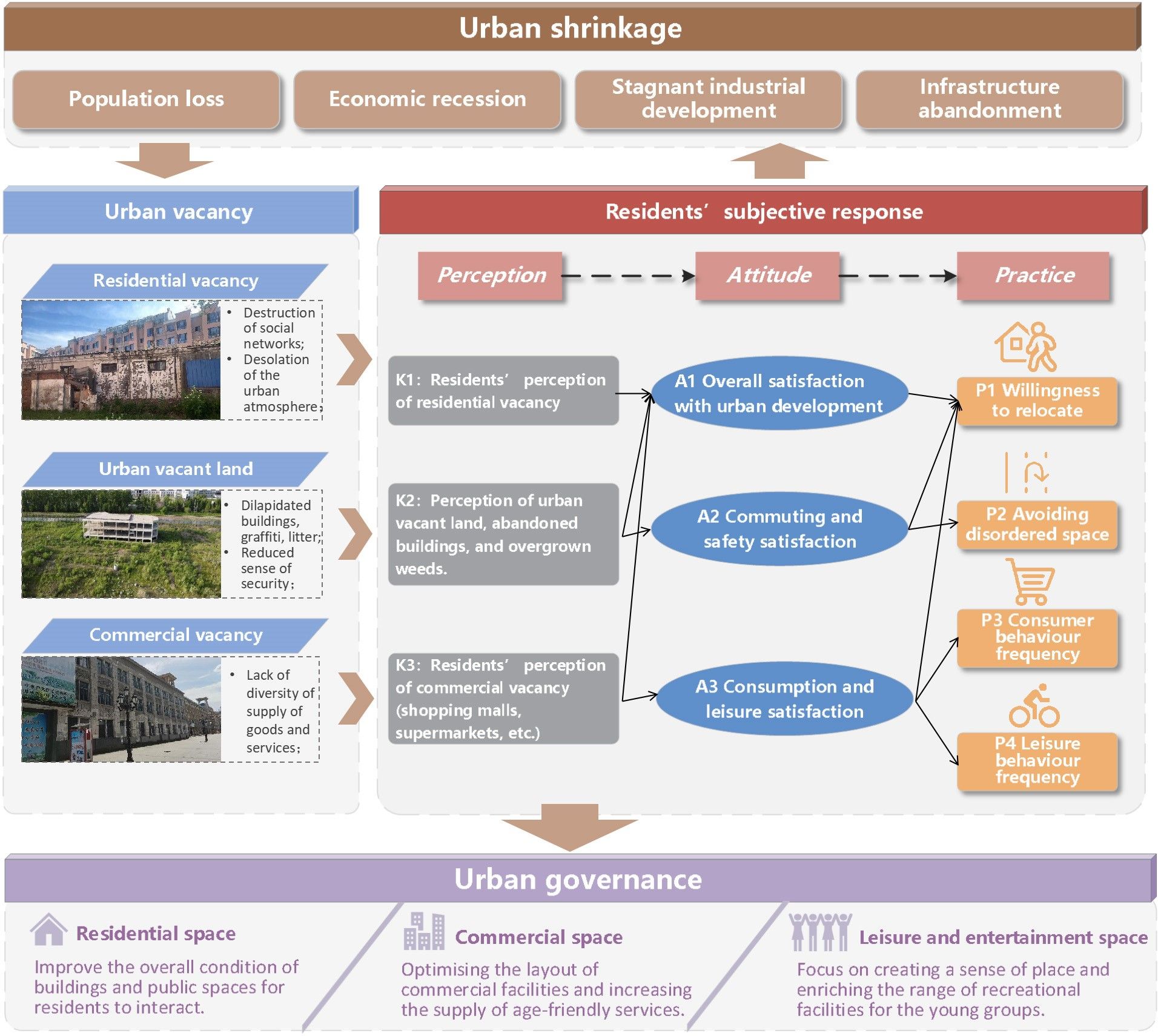 以上研究成果以“How do remaining residents react to urban vacancy in shrinking city: A KAP model analysis of Yichun, China”为题发表于Cities期刊。我院博士研究生付慧为第一作者,刘艳军教授为通讯作者。该研究得到了国家自然科学基金和吉林省科技发展计划项目等的支持。