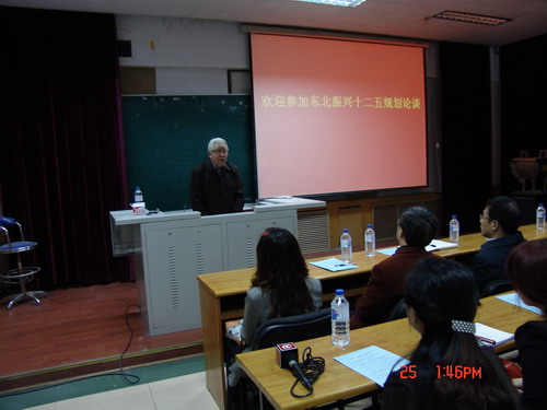 4月25日,东北师大城市与环境科学学院、中国东北研究院举行《东北振兴“十二五”规划》学者论谈。陈才教授等七位学者,分别就东北振兴总体情况及“十二五”规划格局、建设富裕美好新农村、“十二五”东北地区产业振兴的战略思考、统筹区域协调发展、资源型城市可持续发展、安全视角下的东北地区重大空间关系、东北地区湿地保护与生态环境建设等方面做了学术报告,解读《东北振兴“十二五”规划》,并结合以往研究提出诸多应对“东北振兴”和“人口、资源、环境与可持续发展”的独到见解。学院副院长王士君教授主持论谈会并介绍有关东北振兴十二五规划的背景情况,院长吴正方教授就报告内容以及中国东北问题研究与学院学科建设做了总结性发言,提出“再团队,再研究”的发展思路。