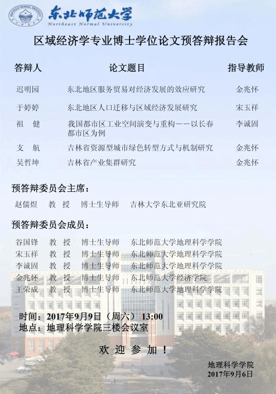 关于区域经济学专业博士学位论文预答辩报告会的通知