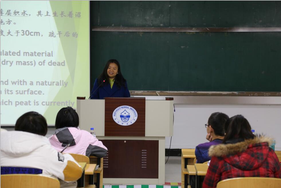 首先,王忠强老师以“水土污染与你我”为主题,从污染物的定义、污染物的产生、污染物消减路径进行了详细的介绍,让同学们深刻地认识到保护环境的重要性。王老师还分享了他的科研经历和科研成果,让同学们明白到环境治理在你我。接下来赵红艳老师以“北温带泥炭沼泽”为主题,介绍了什么是泥炭沼泽,并引出了地球上最重要的生态系统,说明了泥炭沼泽的重要性。接着赵老师又介绍了泥炭沼泽的分布,讲述了她的探究历程及研究内容,鼓励同学们多走,多看,多交流,立足脚下,放眼世界,赢得同学们的阵阵掌声。