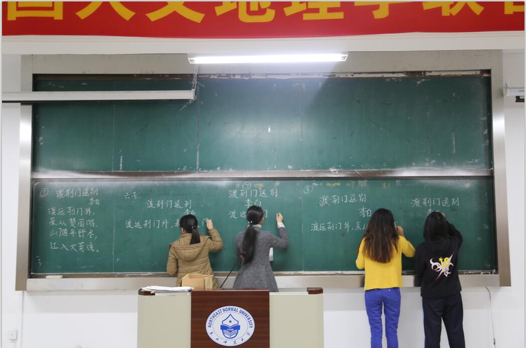 10月14日中午,由地理科学学院学生会学习部主办的钢笔字粉笔字大赛在地理大教室圆满结束。本次比赛得到了同学们的积极响应,本次比赛邀请到的评委有张泽远老师和两名优秀的学长。