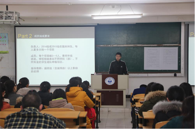 为了进一步激发学生的科研兴趣,加强同学们对科研的认识,提升学生撰写科研项目申报书的水平,地理科学学院学生会科研部于2016年3月10日中午12:00在地理大教室开展了历时半小时的科研、国创宣讲会。出席本次活动的成员有学生会主席刘旭学长和学生会科研部部长熊志飞学长。