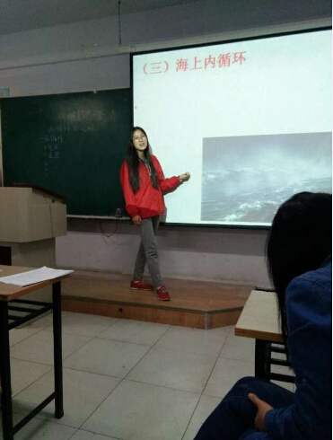 活动分为参赛选手授课、评委点评以及为获奖选手颁奖三个环节。在主持人宣布比赛正式开始后,选手们按顺序开始了限时十分钟的授课。选手们用深入浅出的讲解、独特新颖的教学方法以及合理整齐的板书为同学们生动地讲解了荒漠化的防治、水循环、工业区位选择等问题。随后,评委们对选手们的表现做出了精彩的点评。在活动的最后,一号选手以93.5分的高分脱颖而出,被评为本次周末小课堂之星。