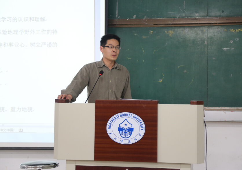 活动开始后,侯文宇和宋雪同学依次上台为同学们分享了他们在全国高校地理联合实习中的所见所闻,通过照片讲解了一些地质地貌知识,并热情地给同学们提出了几点实习建议,同学们深感学姐的建议贴心。接着刘旭学长根据自己的实习经验,向同学们梳理了本次野外实习过程中在地质方面应注意的知识点。最后李鸿凯老师以幽默的语言为同学们介绍了此次实习的具体路线以及实习地点的基本信息。李洪凯老师着重向同学们强调了实习期间的安全问题,并凭借自己多年的带队实习的经验给同学们提出了几点注意事项,同学们认真地做好笔记。