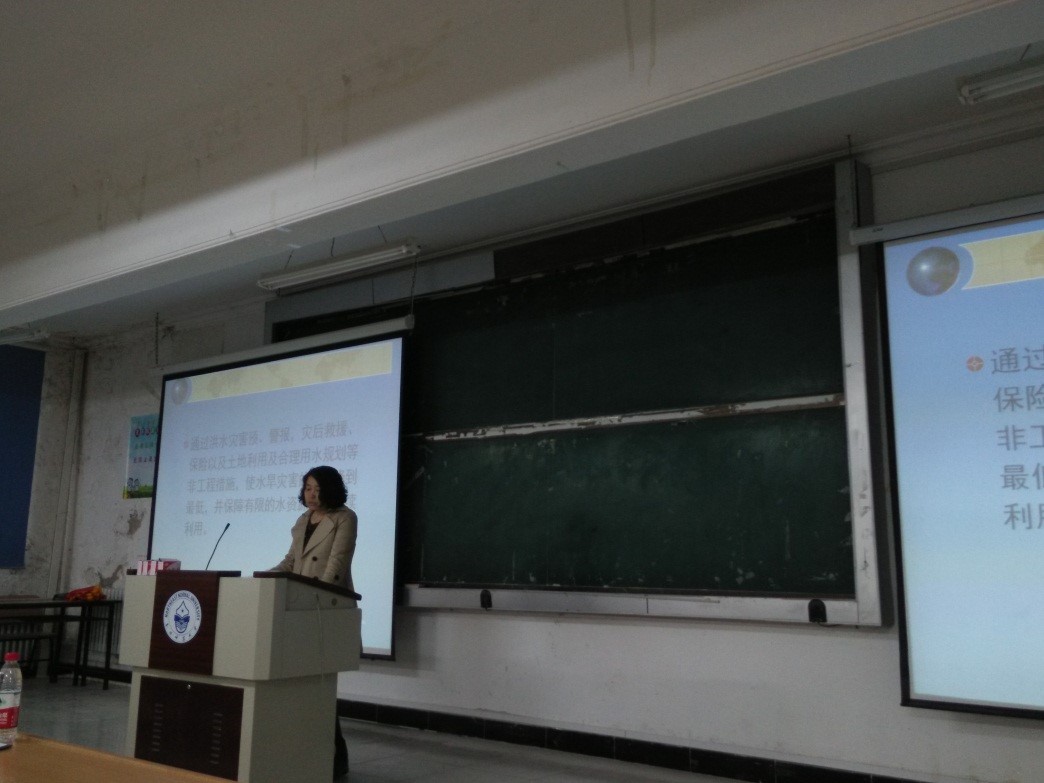 靳英华老师和秦丽杰老师分别就《气候变化与农田耕作生态优化》与《谈谈对水资源的认识》展开了这次讲座。靳英华老师首先与同学们分享了科研的一些感悟,说明了选题的重要性,并以亲切的口吻提出了对大家的期望,希望同学们把努力当作一种习惯,又以图解的方式为同学们讲解了农田优化和气候评估的知识,使原本复杂的科研报告变得清晰易懂,最后为同学们展示了实习途中的照片,在欢快的气氛中结束了上半场讲座。接着,秦丽杰老师就水资源的认识问题为同学们做了介绍,秦老师的讲解更注重于专业知识,她为同学们讲解了大气降水、地表水与地下水的关系,还讲述了由“生态环境需水”概念的提出而引发的一系列科学研究的进展情况,图文并茂,内容深刻而又引人思考,现场的同学们都沉浸在神奇的水世界中。
