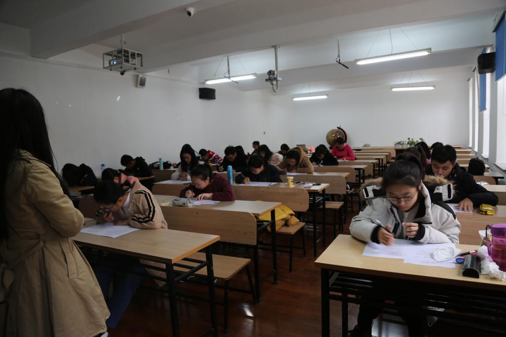 本次初赛以笔试的形式进行,分为听力和填词两个考场,报名的同学自行选择考场参加考试。笔试过程中,工作人员认真监督,为参赛人员营造了一个安静的环境。同学们仔细答题,拿出自己最好的状态发挥最好的水平。考试过程认真严谨,各环节开展得井然有序,同学们在考试中都自觉遵守考试纪律,表现优异。初赛结果将于近日公布。