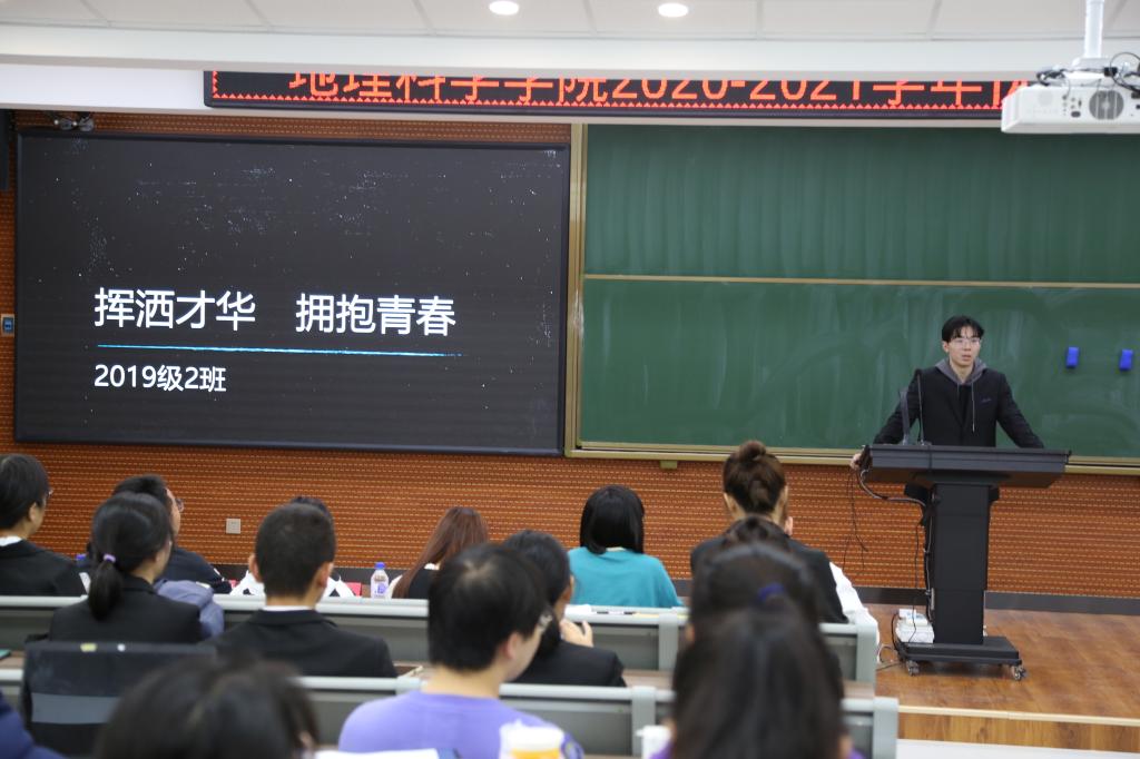 10月13日,由我院团委生活服务中心举办的2020-2021年度优秀班集体评比活动在地理大教室顺利举行。出席本次活动的嘉宾有我院党委副书记兼副院长陈静老师、团委书记沈雯老师、2018级辅导员隋蕙咛老师、2019级辅导员姚佳老师、2020级辅导员董文标老师、2021级辅导员张婧宁老师以及2018级优秀的学生代表。